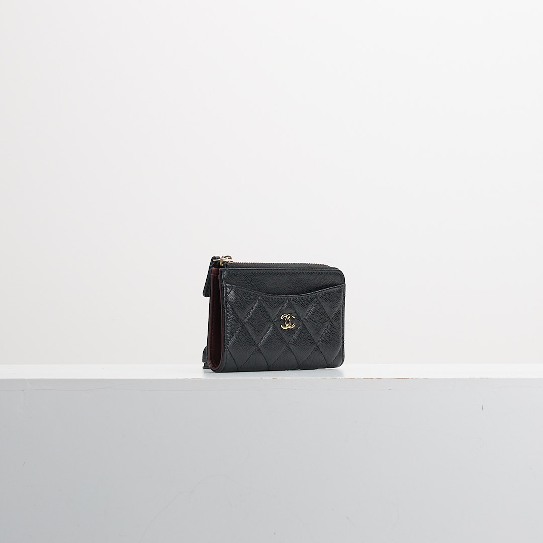 二手Chanel L拉鍊零錢卡包/黑金牛